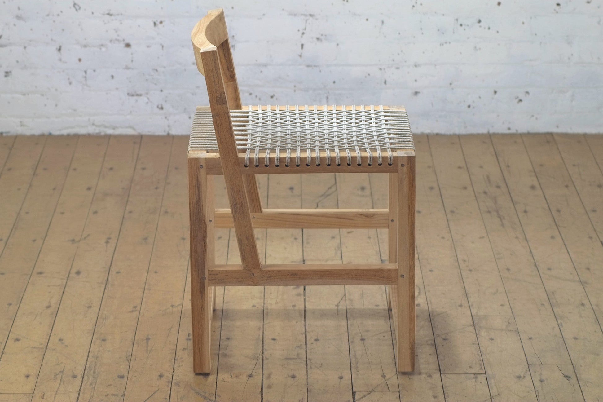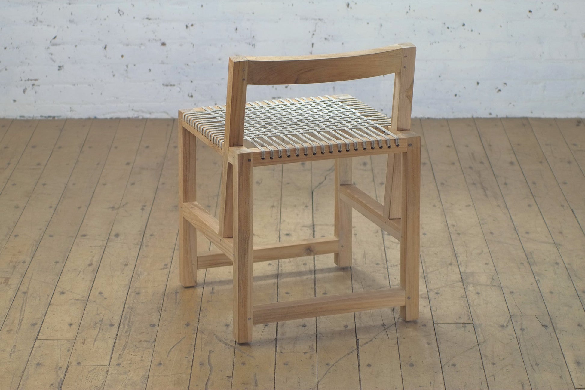 The Kumiki chair exemplifies Japanese minimalism and precision with its interlocking wooden frame and simple woven seat. The frame features hand made traditional mortise and tenon joinery. The rope provides supportive seat with plenty of comfort. Available for use indoor and outdoor.