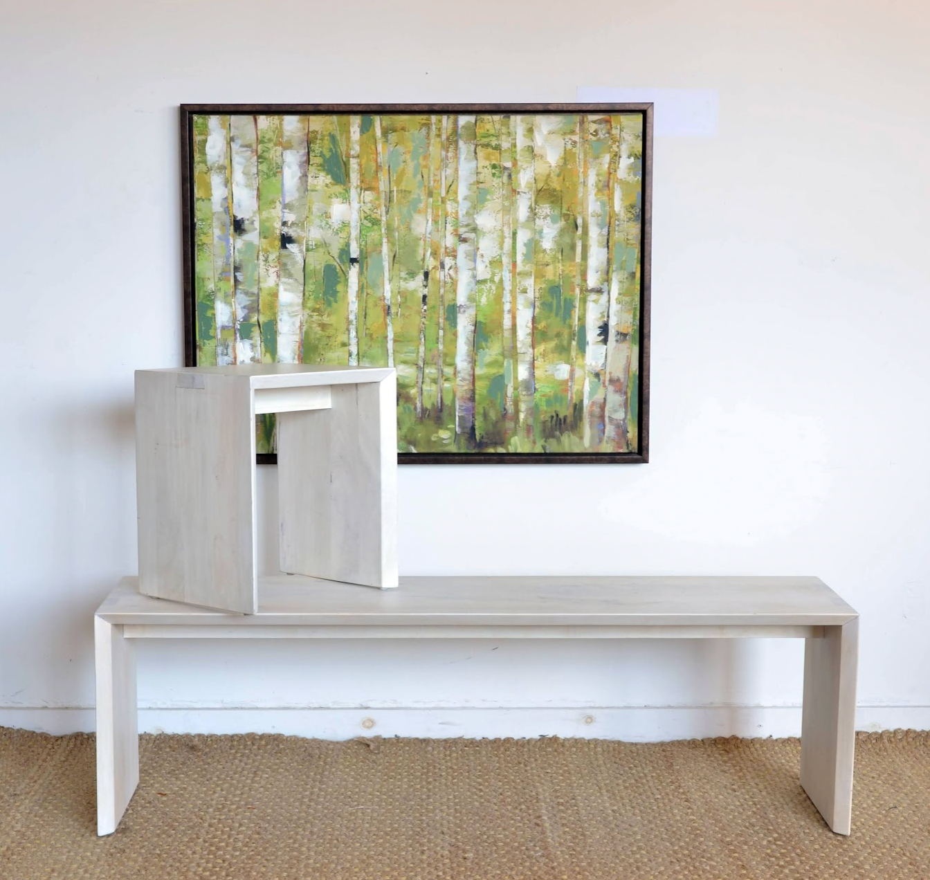 The Christy Series is designed in a simple waterfall style. Streamlined and sturdy, this bench is constructed with solid dovetail joinery and features beveled edges. Also available as a single seat, as a storage bench and paired with the console. Clear lacquer finish for indoor use only.