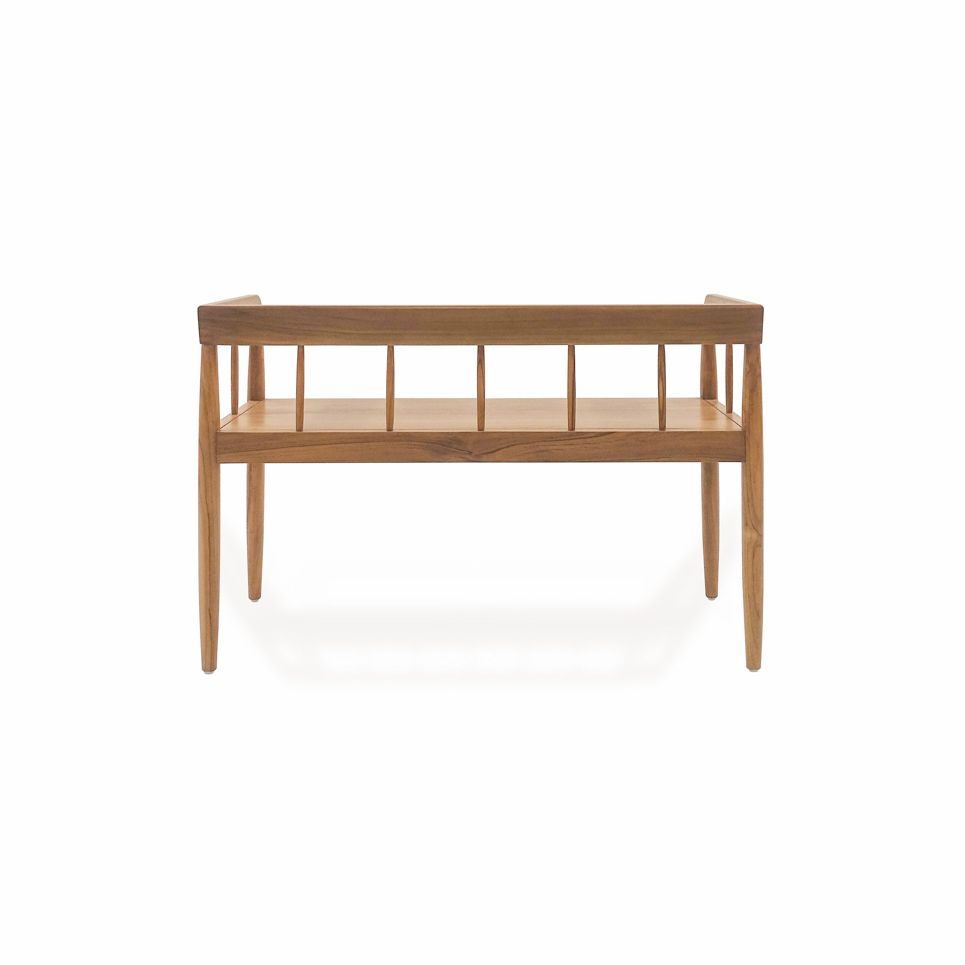 At 40 inches wide, our Harvest Bench is sized for modern apartment living, yet quietly asserts an elegant presence. Whether used in an entryway or as a statement piece at the end of a bed, its versatile and compact footprint offers maximum style without crowding your space. Expertly crafted from solid teak.