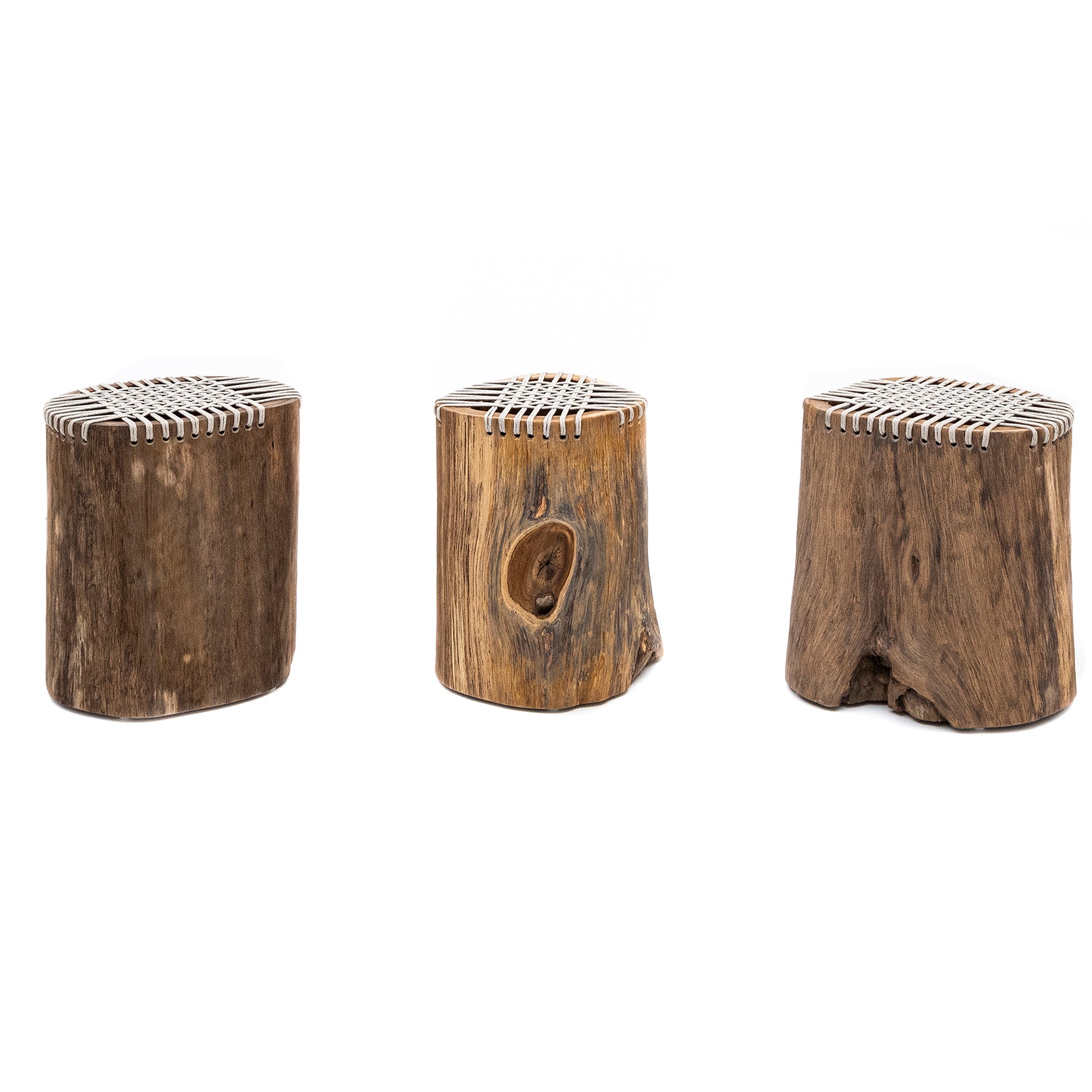 Webbed stumps were inspired by the shape created by nature itself. Handcrafted from clear finished hollow Teak wood, these hollow stumps feature a gray woven seat for added comfort. They are uniquely individual from one another yet are similar in shape and uniform in height. Due to product’s natural variations dimensions are approximate. Image is for reference only.