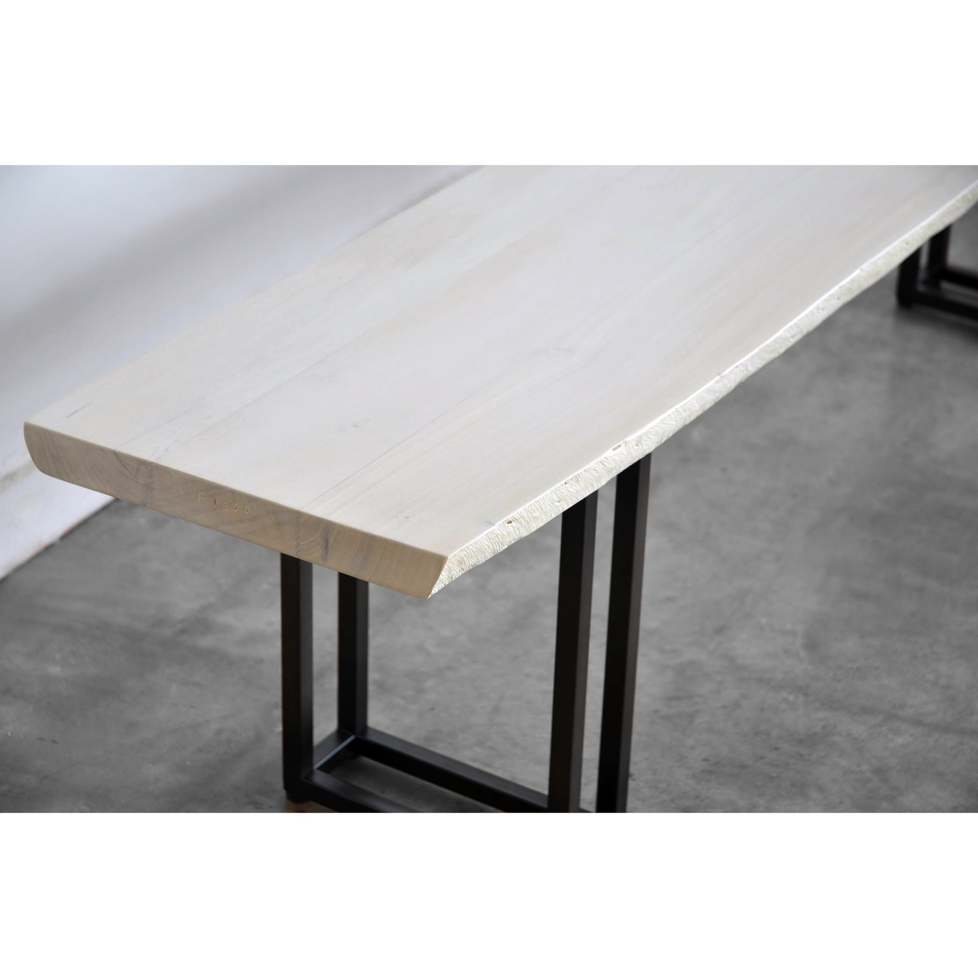 The Kali Live Edge Wireframe Bench features a live edge hardwood top, available in two different lengths, and paired with a set of our iron Wireframe bases.
