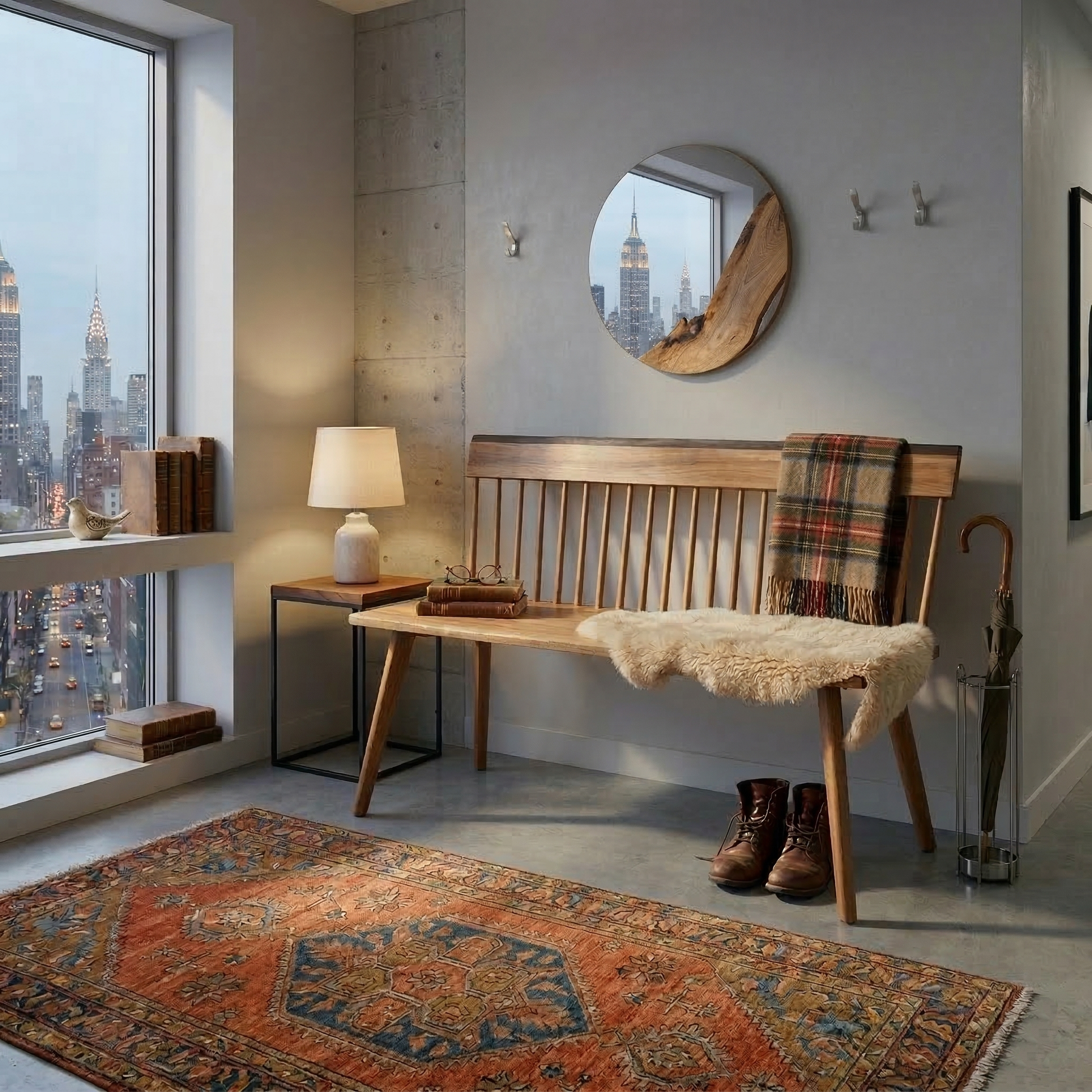 The Newport Bench 40-inch is a contemporary classic designed for modern apartment living. It shares the same signature beveling and joinery accents as other sibling pieces in the Newport Collection, featuring a spindle back with a subtle fanning design. This low-profile bench allows for open sightlines and fits neatly into smaller spaces.Β