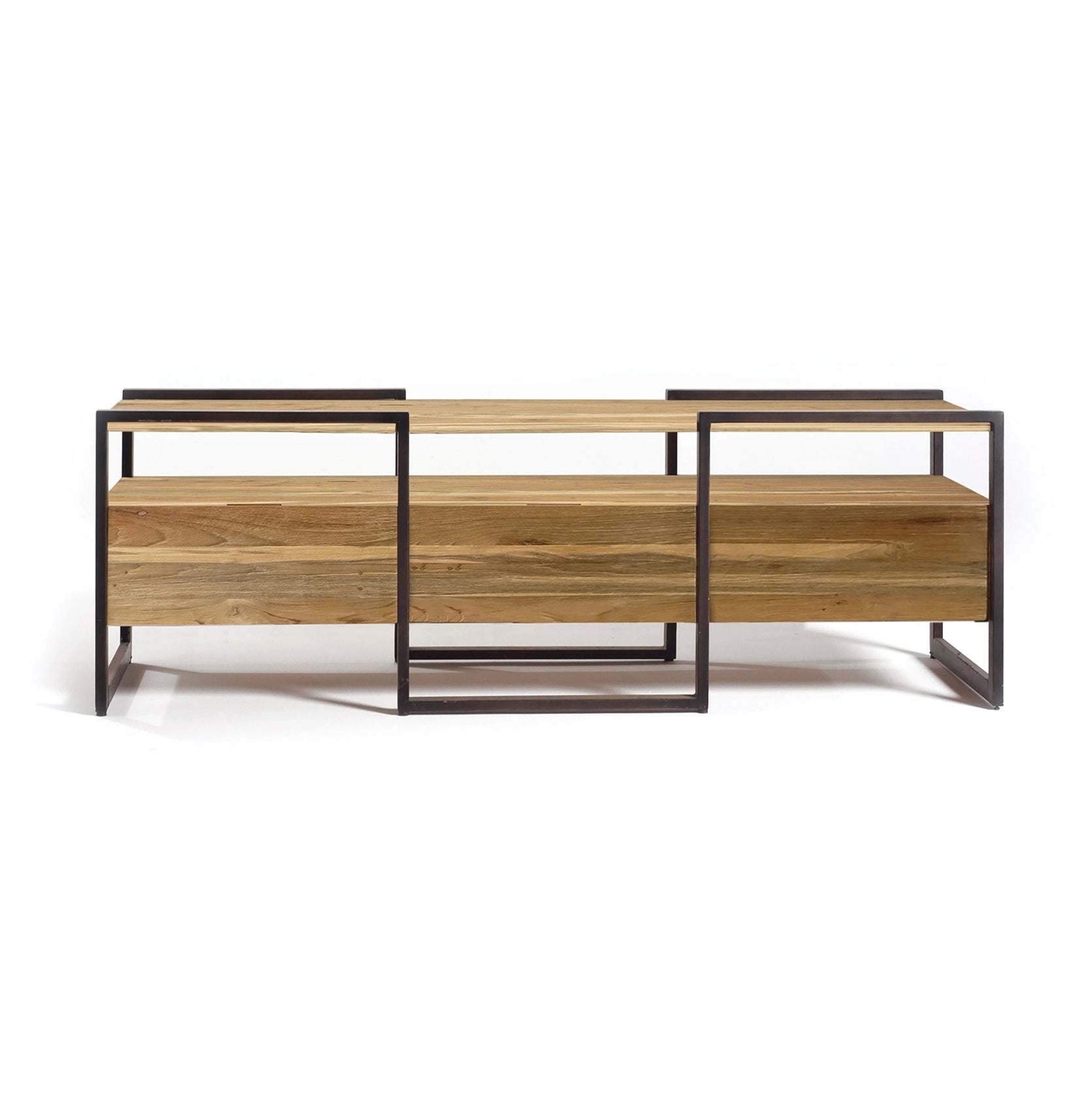 Serpentine is a loft style media cabinet that is made of solid wood using traditional finger joinery, and a welded iron frame. The frame wraps the drawers as one continuous loop, thus justifying the name. Generous size drawers run on wood glides.
