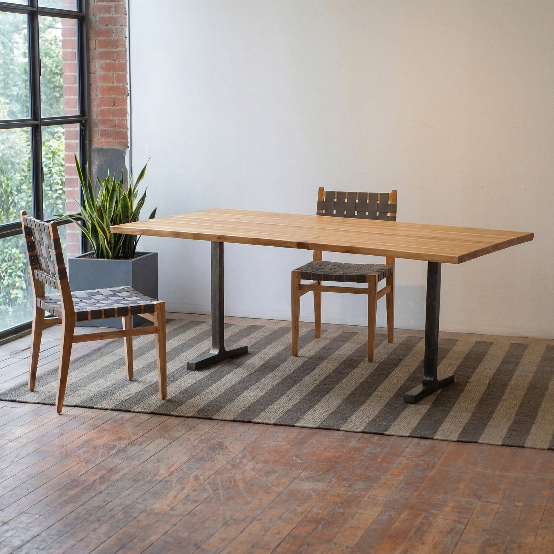 The Slim base is beautiful sand casting of recycled iron with a black powder coated finish or clear finish. Due to its smaller profile, the original Slim pairs well with more narrow tops, approximately 48" - 72" in length x up to 36" wide.